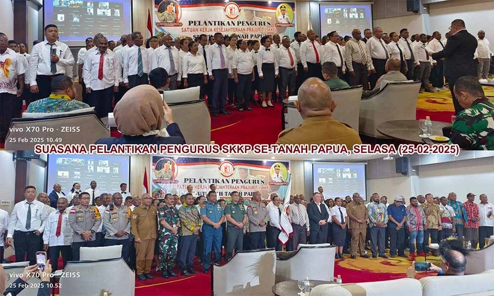 sentani,Bilal_investigasi.co.id– Dewan Pengurus Wilayah Satuan Kerja Kesejahteraan Prajurit (DPW SKKP) se-Tanah Papua secara resmi telah terbentuk dan dilantik pada hari Selasa, 25 Februari 2025, bertempat di Hotel Suny Sentani, Kabupaten Jayapura, Provinsi Papua. Dr. John Manangsang Wally, M.Kes menjabat sebagai Ketua DPW SKKP Tanah Papua dibantu 4 orang pengurus di tingkat wilayah.