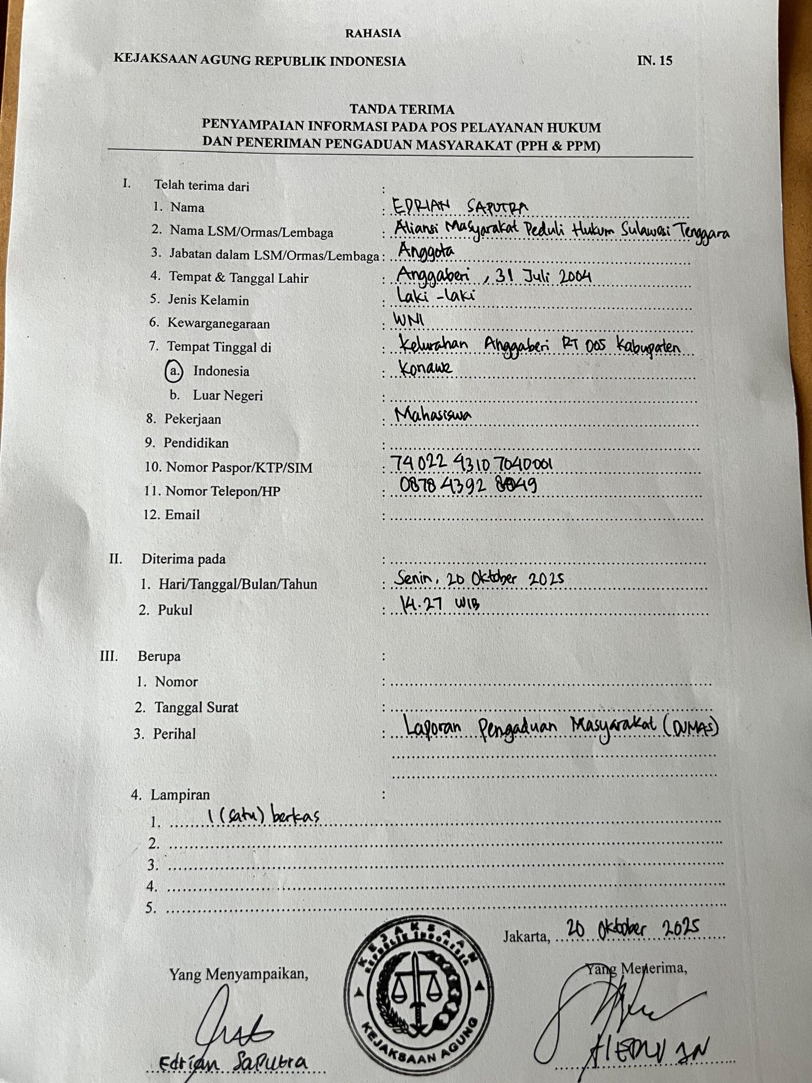 Bilal_investigasi.co.id,Sulawesi tenggara- Aliansi Masyarakat Peduli Hukum (Ampuh) Sulawesi Tenggara (Sultra) resmi melaporkan Bupati Muna Barat, La Ode Darwin ke Kejaksaan Agung Republik Indonesia (Kejagung RI) pada Senin, 20/10/25.