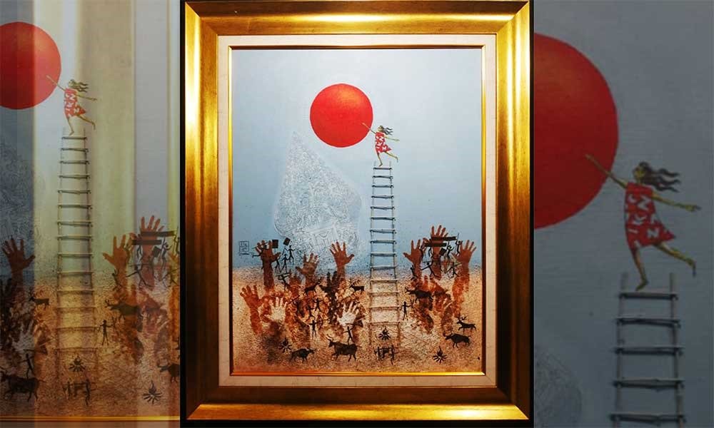 Lukisan ini tidak hanya menghadirkan visual yang menawan, tetapi juga menyelipkan kritik tajam. Di bagian dasar tangga yang dinaiki sang gadis, tergambar tangan-tangan yang seolah meronta, hewan-hewan yang gelisah, serta benda-benda yang berserakan. Simbol-simbol ini diyakini merepresentasikan kekacauan, pergolakan sosial, kegelisahan masyarakat, penderitaan manusia—termasuk masyarakat adat—serta dampak negatif terhadap flora dan fauna.