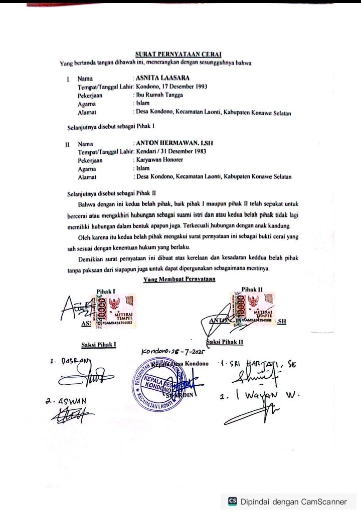 Surat cerai dan asuh itu di buat oleh istri Anton dan kemudian datang bawa ke saya..jadi saya tanda tangan.. Ucap kades kondono.