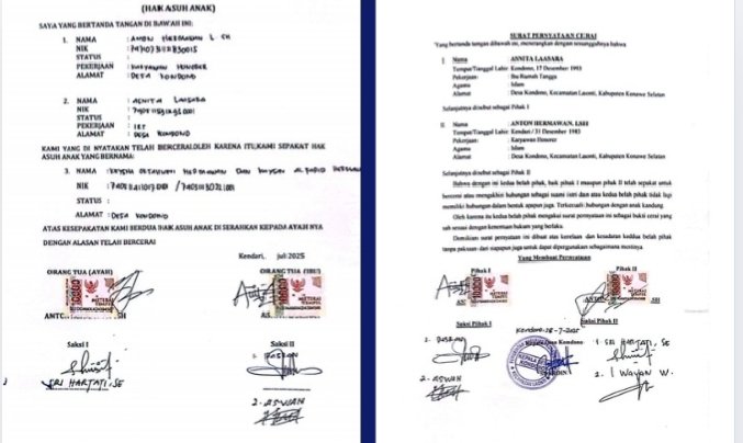 Informasi yang dihimpun menyebutkan bahwa Anton yang sedang dalam status warga binaan lapas kelas IIA Kendari diduga di paksa menandatangani “surat cerai” buatan desa, yang kemudian dijadikan dasar untuk mengubah data kependudukan.