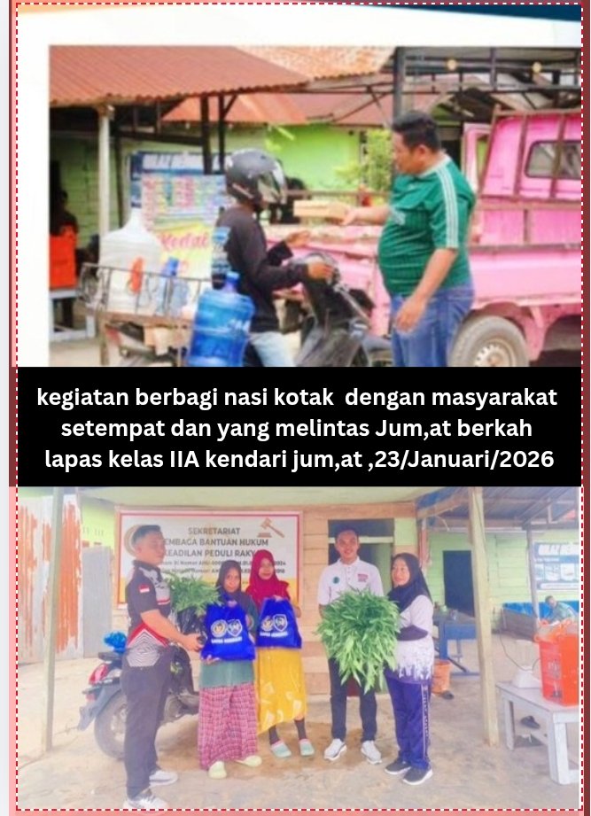 KENDARI – Lembaga Pemasyarakatan (Lapas) Kelas IIA Kendari kembali menegaskan komitmennya dalam membangun kepedulian sosial melalui kegiatan bakti sosial bertajuk “Jumat Berkah”, yang digelar pada Jumat, 23 Januari 2026.