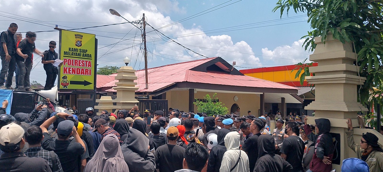 “Namun mendapatkan penolakan dan sikap arogansi dari seorang ka.polres kota Kendari yang tidak memberikan solusi apapun kepada para pendemo.